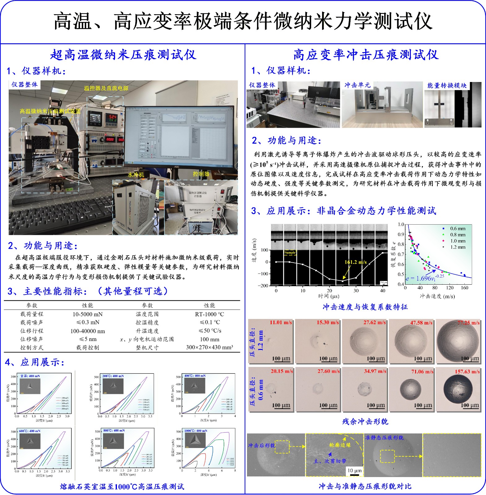 2、离位、原位微纳米压痕/划痕测试仪器的研制能力;