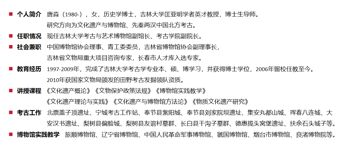 Academic Titles:考古与艺术博物馆副馆长兼考古学院副院长